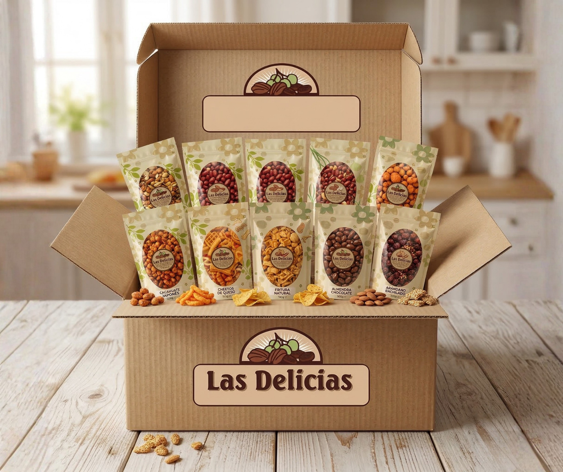 La mayoría de los productos en una presentación de 500 gr: cacahuate español, cacahuate japonés, cacahuate español con ajo, cacahuate garapiñado con ajonjolí, cacahuate de esquite, cacahuate de queso, fritura sorpresa (1kg), almendra con chocolate, ajonjolí garapiñado, arándano enchilado.