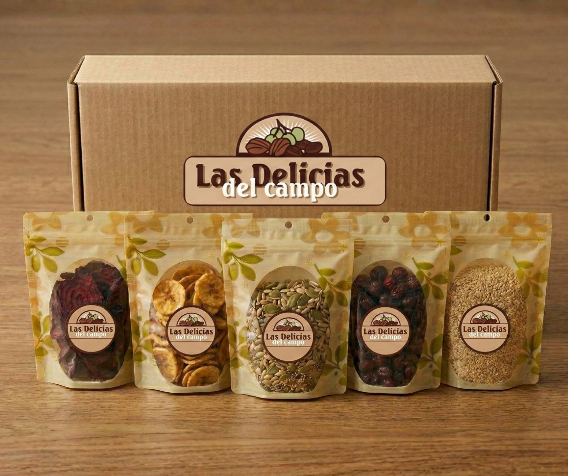 Betabel natural 80 gr, plátano horneado 150 gr, nueces mixtas 200 gr, arándano natural 200 gr, ajonjolí garapiñado 200 gr.