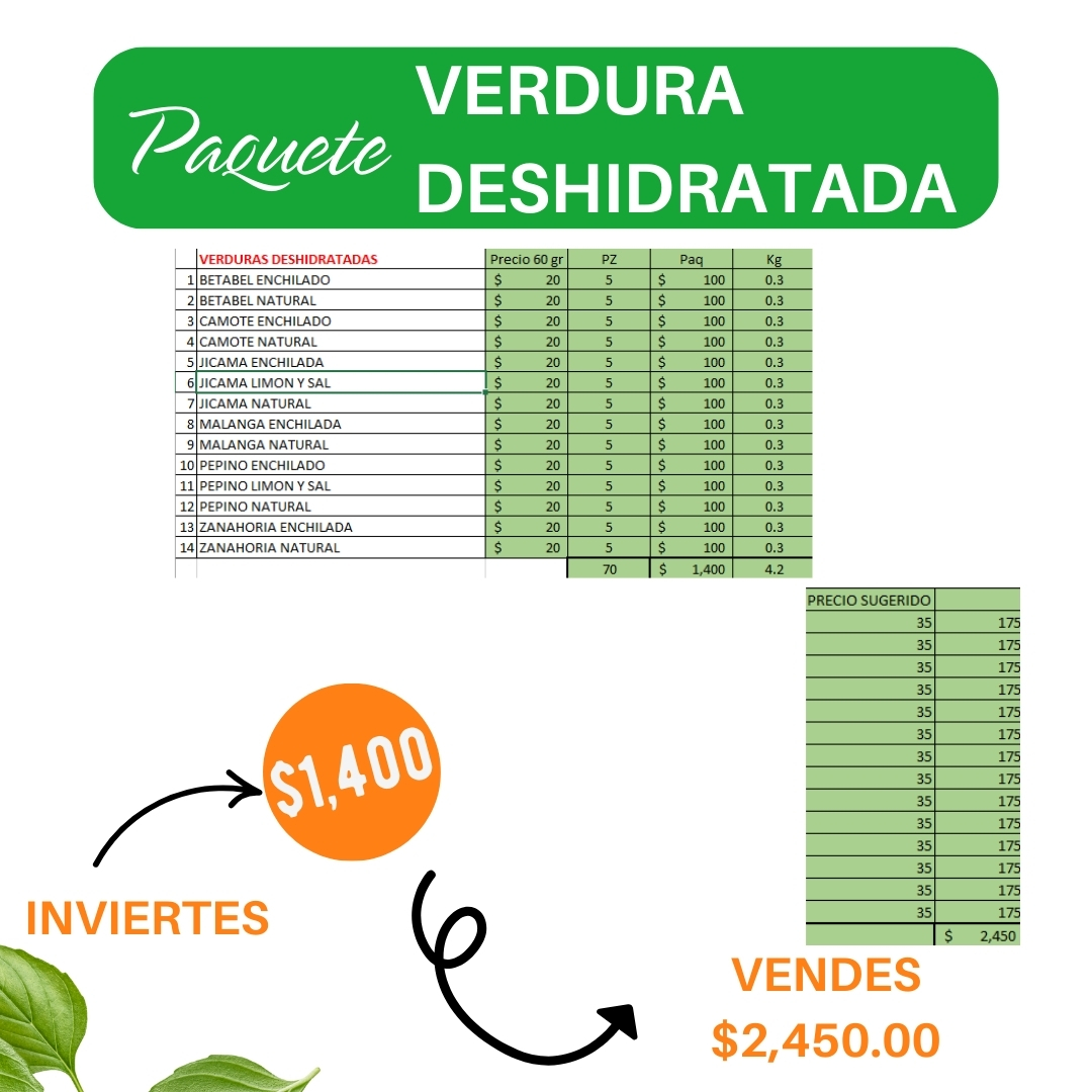 Paquete Verduras deshidratada